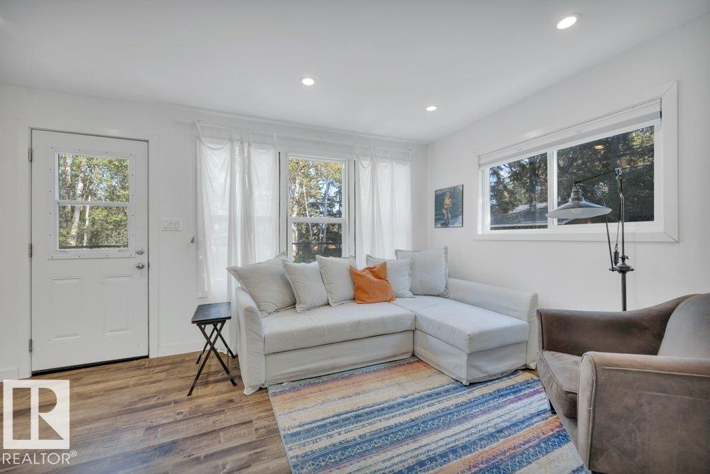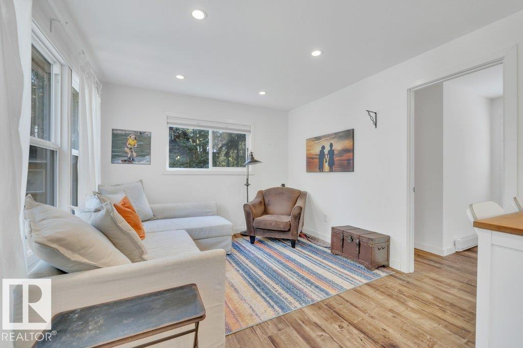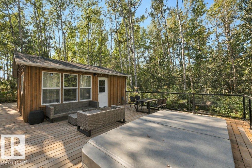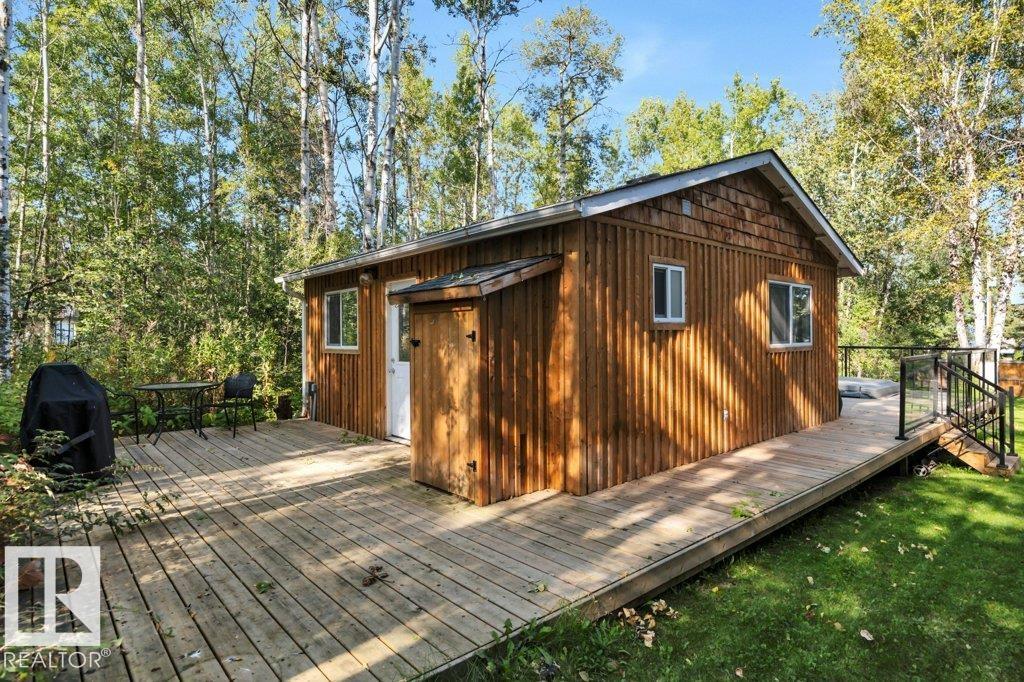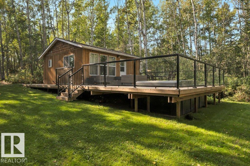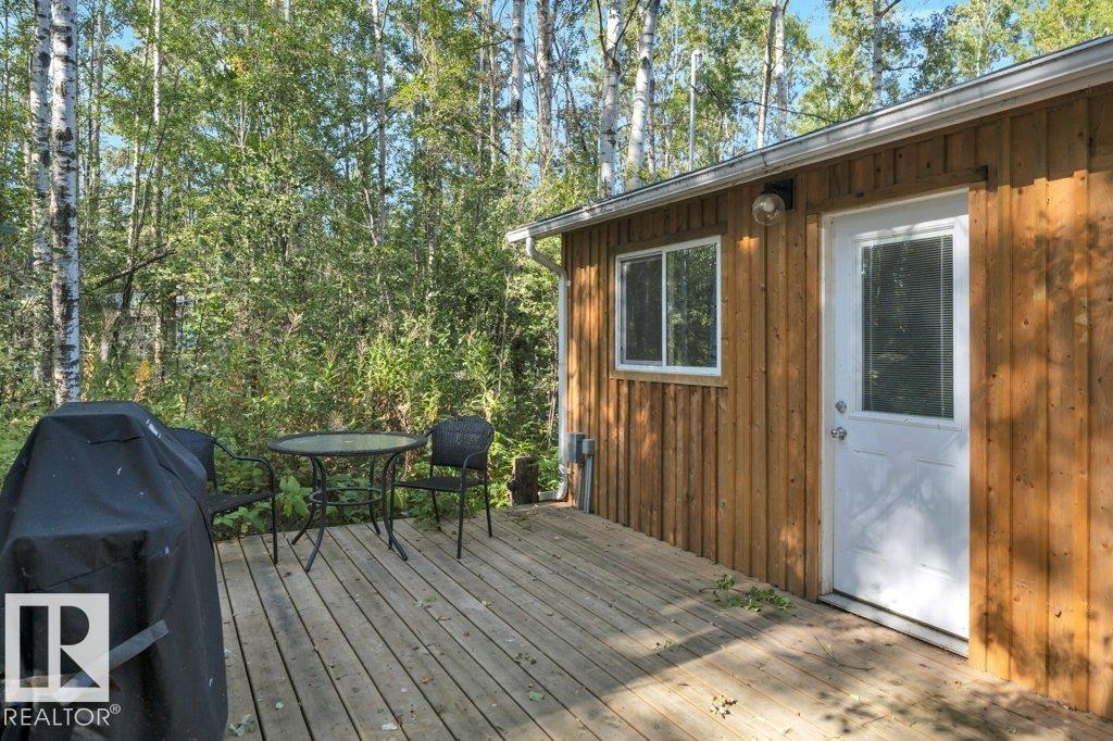 Welcome to your hidden retreat in the quaint Summer Village of Grandview! This charming three season cabin is tucked among the trees and just steps from Pigeon Lake. Inside, you’ll find a cozy living room and eat-in kitchen with stainless steel appliances, island and laminate flooring throughout. The layout includes a comfortable bedroom, a modern 3pc bath, plus 2 bunk houses—perfect for hosting family and friends. Step outside to the entertaining-sized deck, ideal for summer BBQs or simply soaking in the peace and quiet. This property backs also backs onto a small environmental reserve. With fishing, swimming, boating, and all the joys of lake life just across the street, this getaway is the perfect spot to create lasting memories.