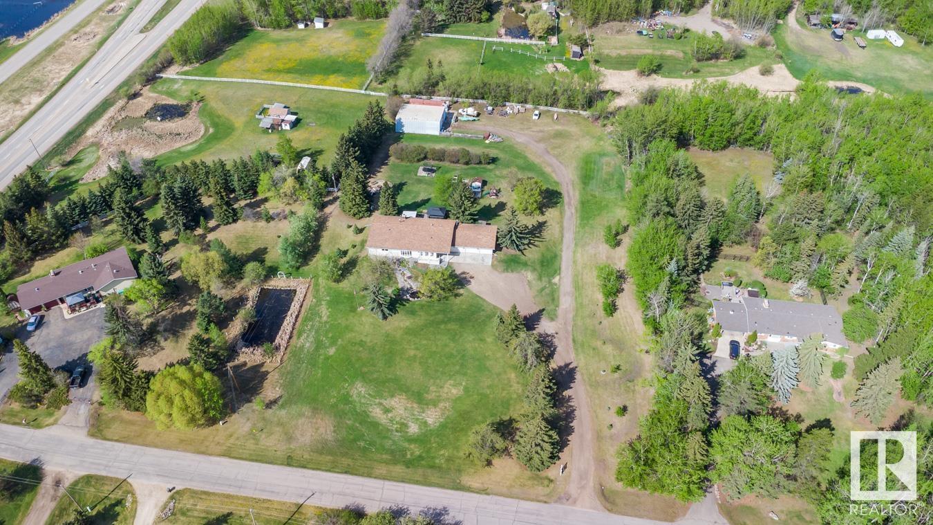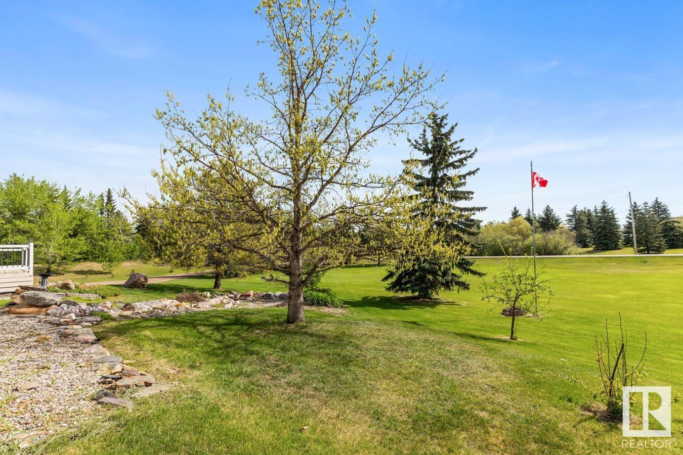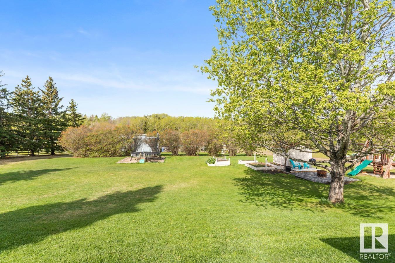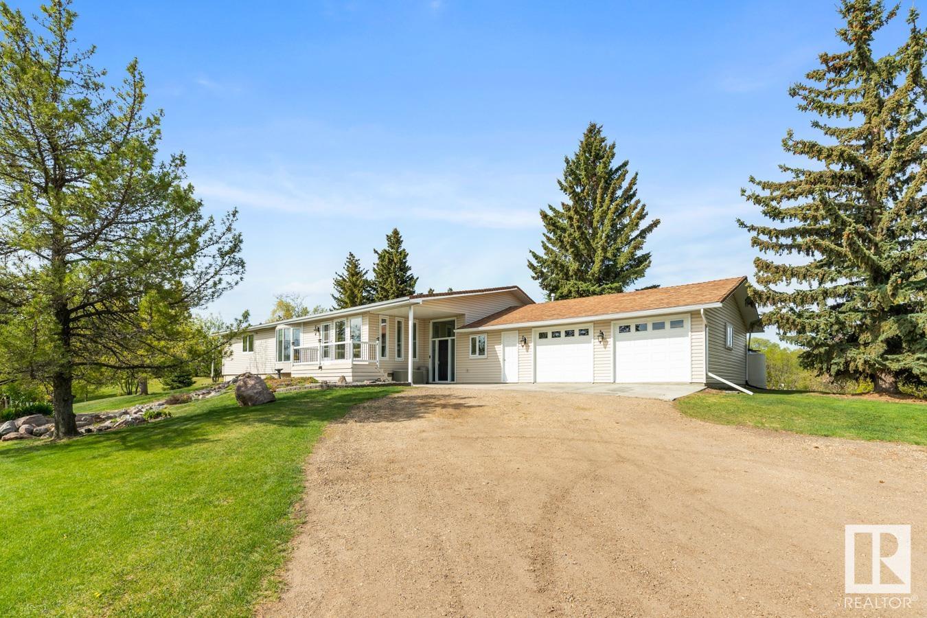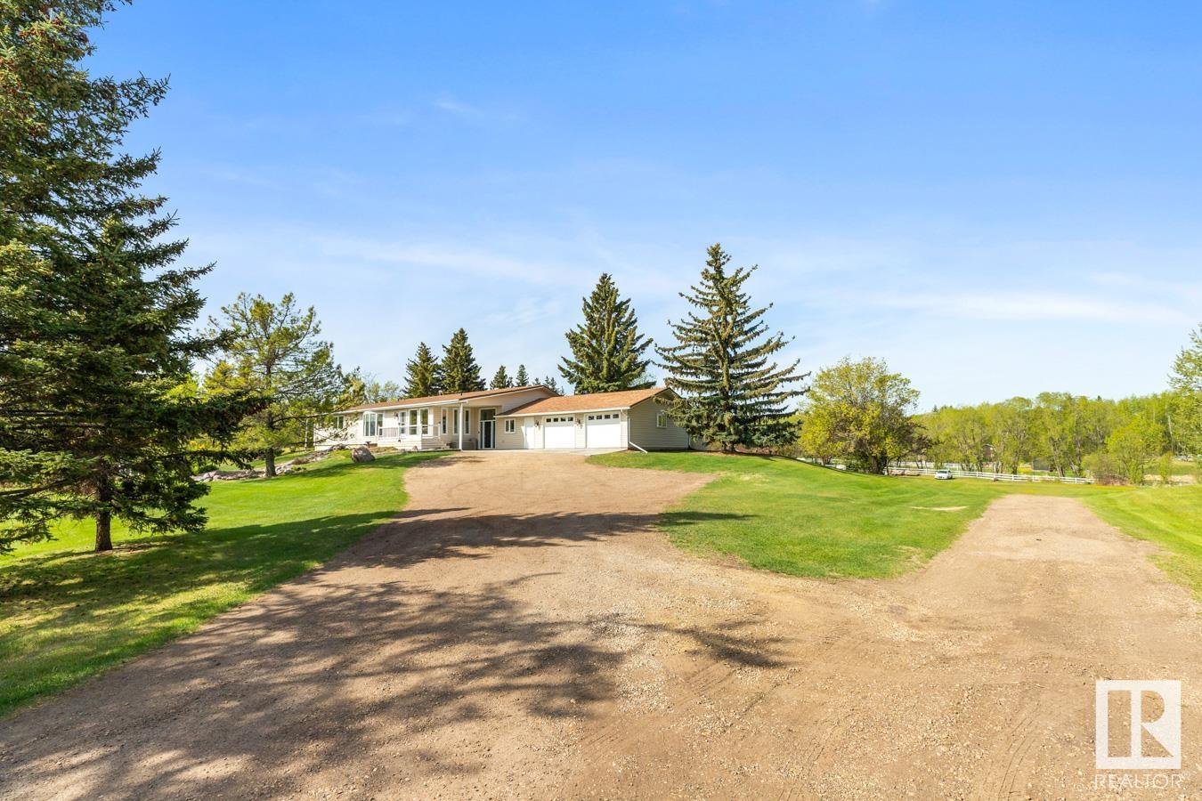 Welcome to your own PRIVATE retreat, just 2 mins from Sherwood Park, featuring a HEATED 40×50 shop, DOUBLE garage, 4 bedrooms & 3.5 baths, tucked onto 2.99 acres surrounded by trees in Sherwood Place. You are welcomed in to find a spacious entry with vinyl flooring that leads to a family sized kitchen that offers plenty of cabinets, NEW S/S appliances & island that overlooks the dining & living room with fireplace. Plenty of natural light in breakfast nook & family room. Awesome king sized primary suite with den, WI closet & 3pc ensuite. 2 more bdrms are both generous in size, 4pc bath & guest bath complement the functional layout. Moving down to the finished basement there is a huge rec room with laminate flooring, large 4th bdrm, UPDATED 3pc bath with sauna, laundry & tons of storage. NEW light fixtures & carpet. LOVE the peace & quiet in the yard with water features, entertaining sized deck, swim spa & raised gardens. DREAM SHOP with 12′ door & 220 power. Beautiful & move in ready!