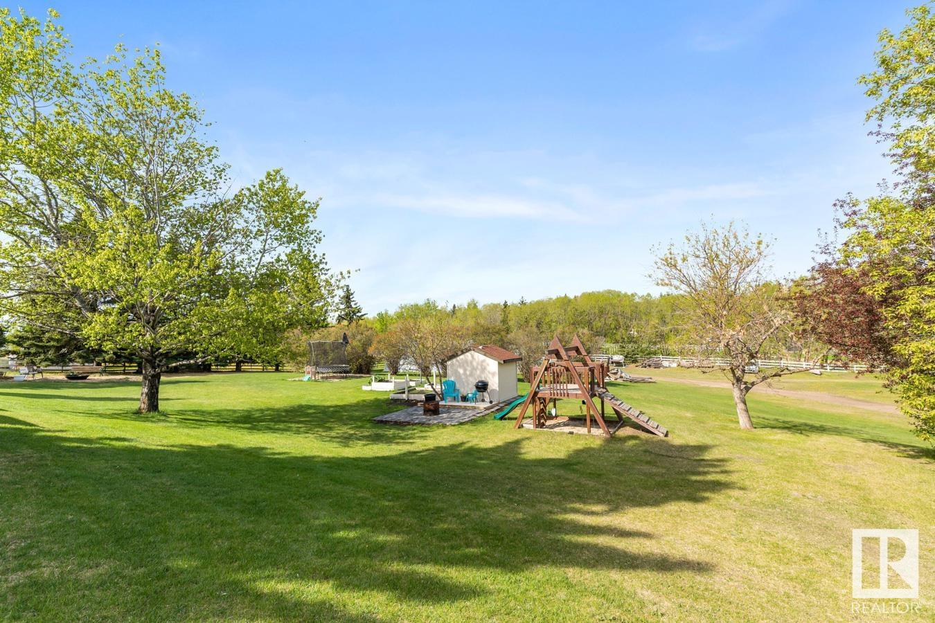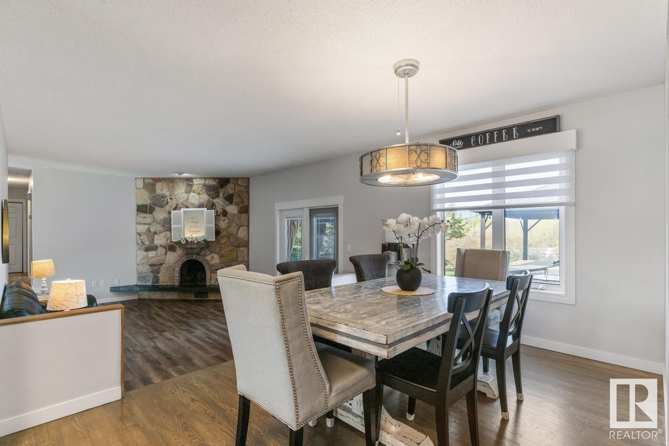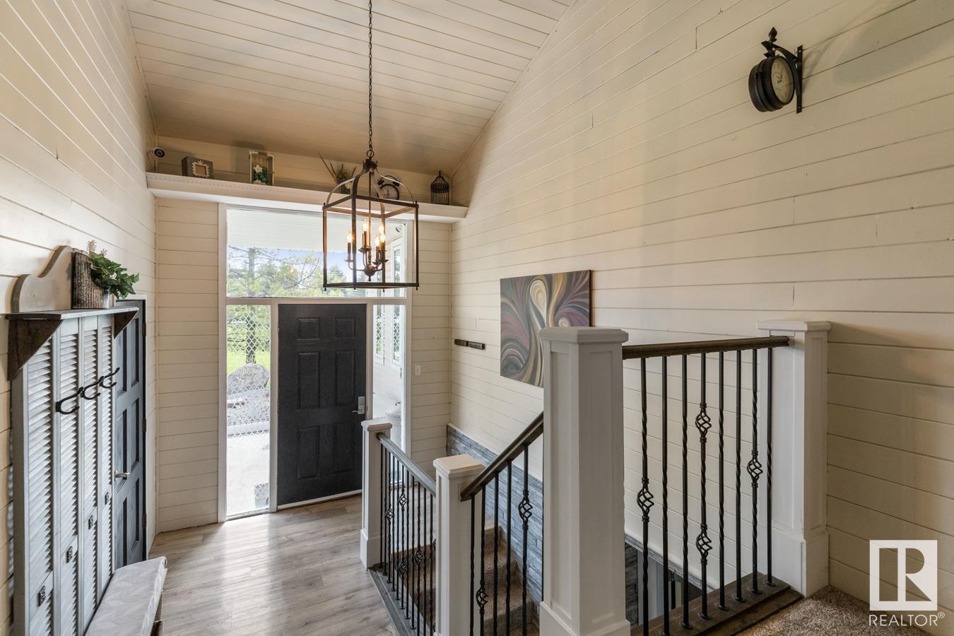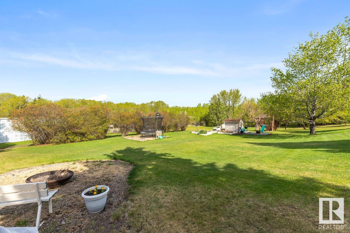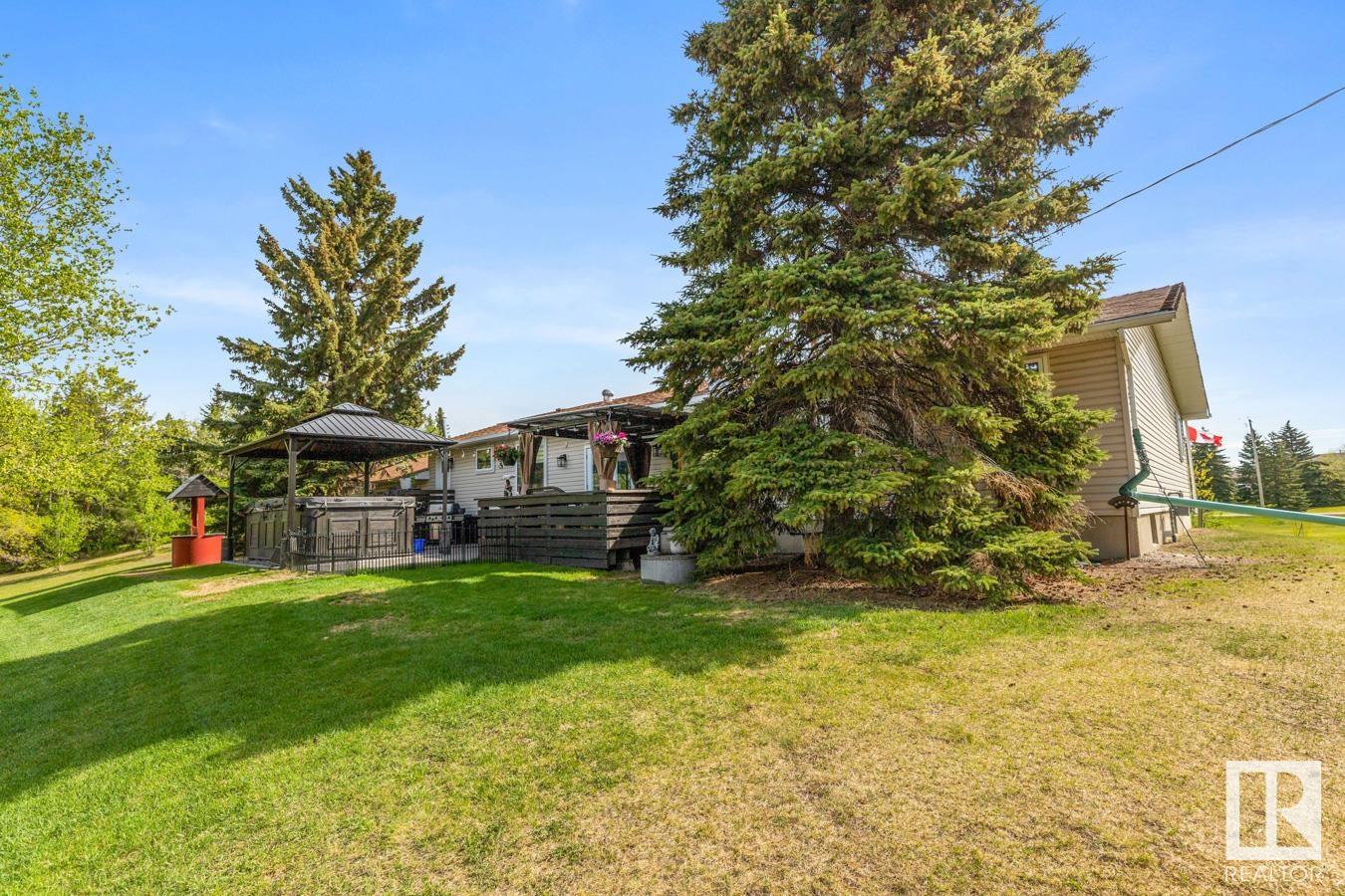 Welcome to your own PRIVATE retreat, just 2 mins from Sherwood Park, featuring a HEATED 40×50 shop, DOUBLE garage, 4 bedrooms & 3.5 baths, tucked onto 2.99 acres surrounded by trees in Sherwood Place. You are welcomed in to find a spacious entry with vinyl flooring that leads to a family sized kitchen that offers plenty of cabinets, NEW S/S appliances & island that overlooks the dining & living room with fireplace. Plenty of natural light in breakfast nook & family room. Awesome king sized primary suite with den, WI closet & 3pc ensuite. 2 more bdrms are both generous in size, 4pc bath & guest bath complement the functional layout. Moving down to the finished basement there is a huge rec room with laminate flooring, large 4th bdrm, UPDATED 3pc bath with sauna, laundry & tons of storage. NEW light fixtures & carpet. LOVE the peace & quiet in the yard with water features, entertaining sized deck, swim spa & raised gardens. DREAM SHOP with 12′ door & 220 power. Beautiful & move in ready!