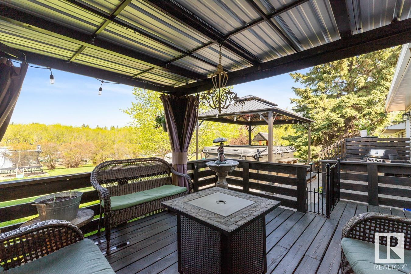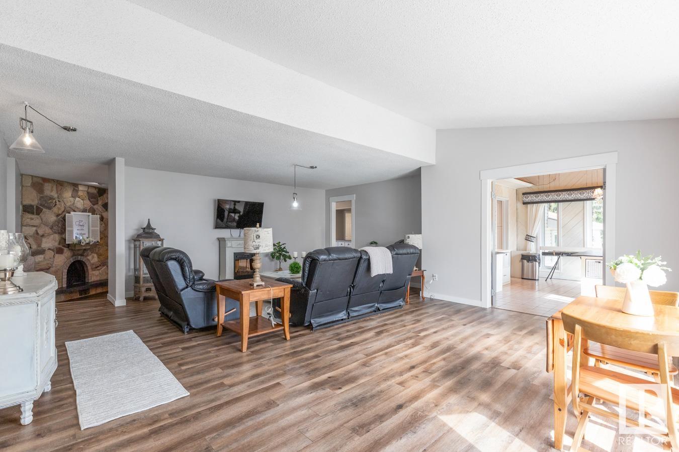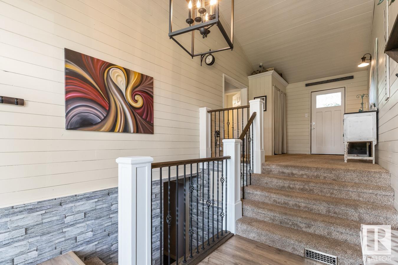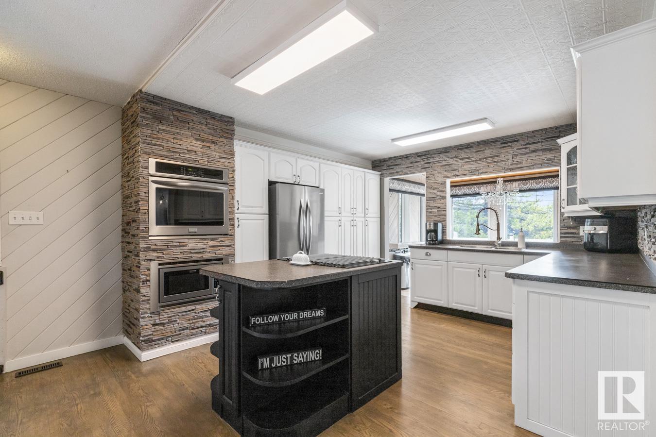 Welcome to your own PRIVATE retreat, just 2 mins from Sherwood Park, featuring a HEATED 40×50 shop, DOUBLE garage, 4 bedrooms & 3.5 baths, tucked onto 2.99 acres surrounded by trees in Sherwood Place. You are welcomed in to find a spacious entry with vinyl flooring that leads to a family sized kitchen that offers plenty of cabinets, NEW S/S appliances & island that overlooks the dining & living room with fireplace. Plenty of natural light in breakfast nook & family room. Awesome king sized primary suite with den, WI closet & 3pc ensuite. 2 more bdrms are both generous in size, 4pc bath & guest bath complement the functional layout. Moving down to the finished basement there is a huge rec room with laminate flooring, large 4th bdrm, UPDATED 3pc bath with sauna, laundry & tons of storage. NEW light fixtures & carpet. LOVE the peace & quiet in the yard with water features, entertaining sized deck, swim spa & raised gardens. DREAM SHOP with 12′ door & 220 power. Beautiful & move in ready!