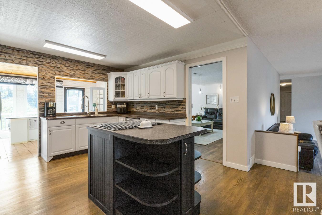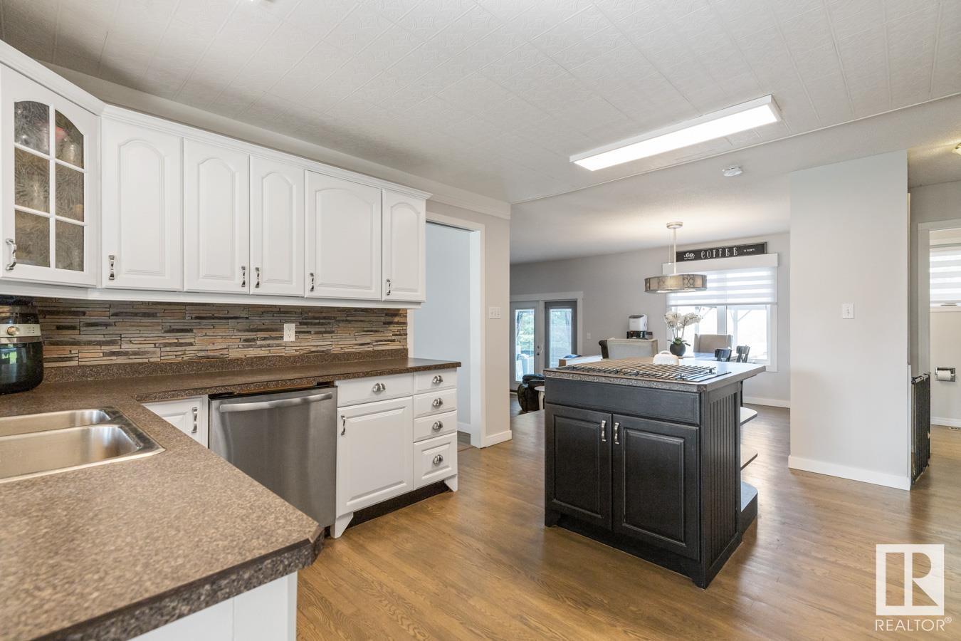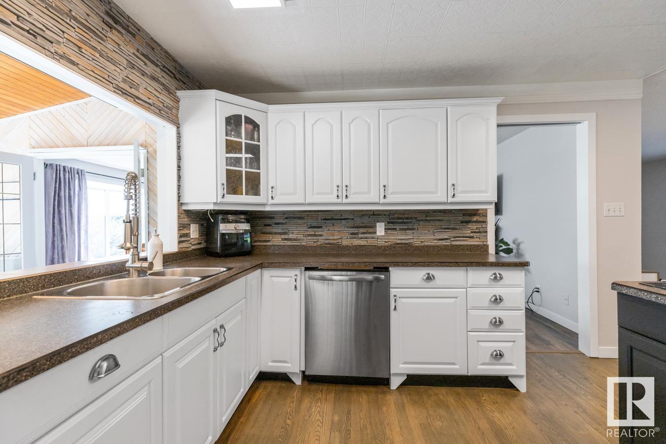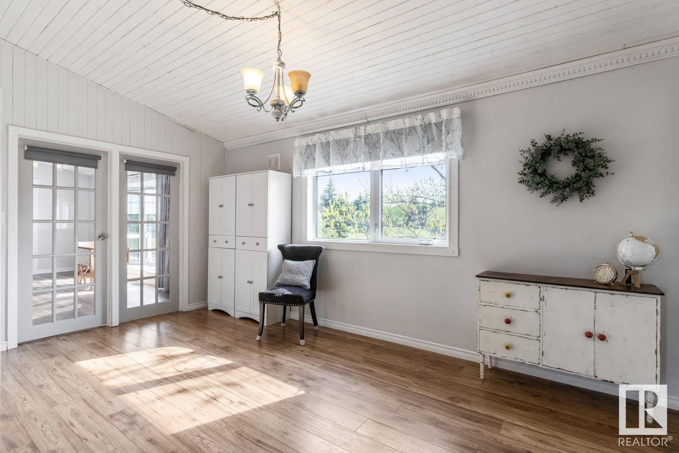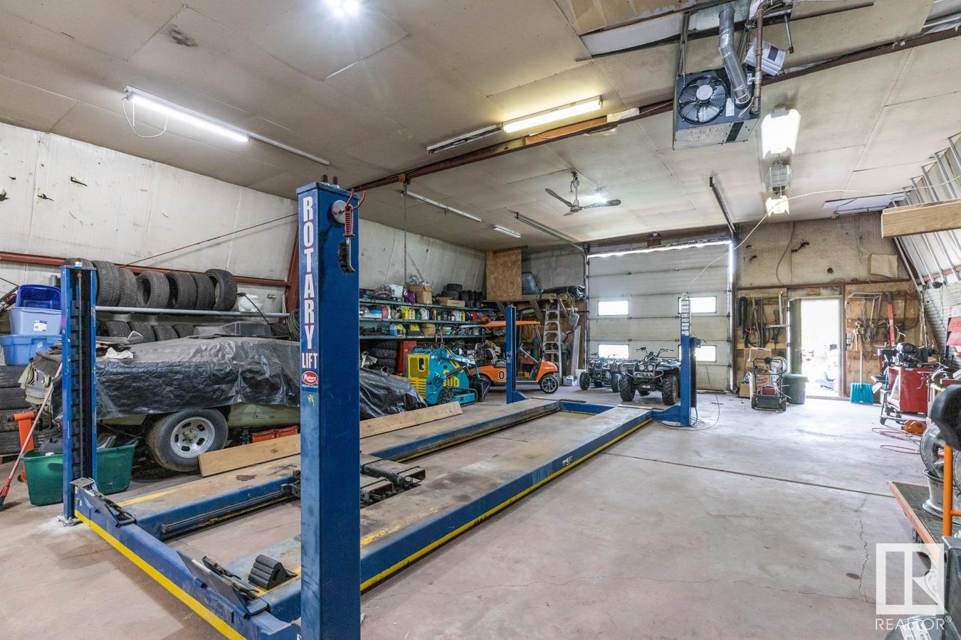 Welcome to your own PRIVATE retreat, just 2 mins from Sherwood Park, featuring a HEATED 40×50 shop, DOUBLE garage, 4 bedrooms & 3.5 baths, tucked onto 2.99 acres surrounded by trees in Sherwood Place. You are welcomed in to find a spacious entry with vinyl flooring that leads to a family sized kitchen that offers plenty of cabinets, NEW S/S appliances & island that overlooks the dining & living room with fireplace. Plenty of natural light in breakfast nook & family room. Awesome king sized primary suite with den, WI closet & 3pc ensuite. 2 more bdrms are both generous in size, 4pc bath & guest bath complement the functional layout. Moving down to the finished basement there is a huge rec room with laminate flooring, large 4th bdrm, UPDATED 3pc bath with sauna, laundry & tons of storage. NEW light fixtures & carpet. LOVE the peace & quiet in the yard with water features, entertaining sized deck, swim spa & raised gardens. DREAM SHOP with 12′ door & 220 power. Beautiful & move in ready!