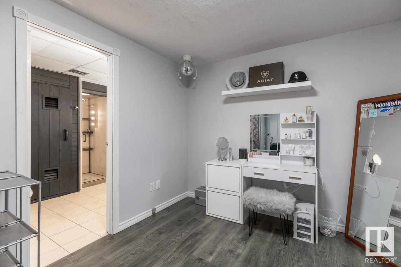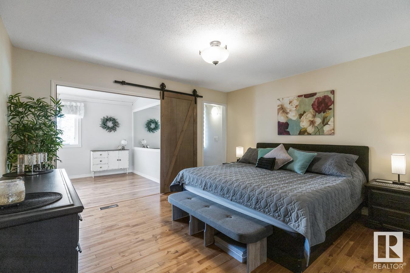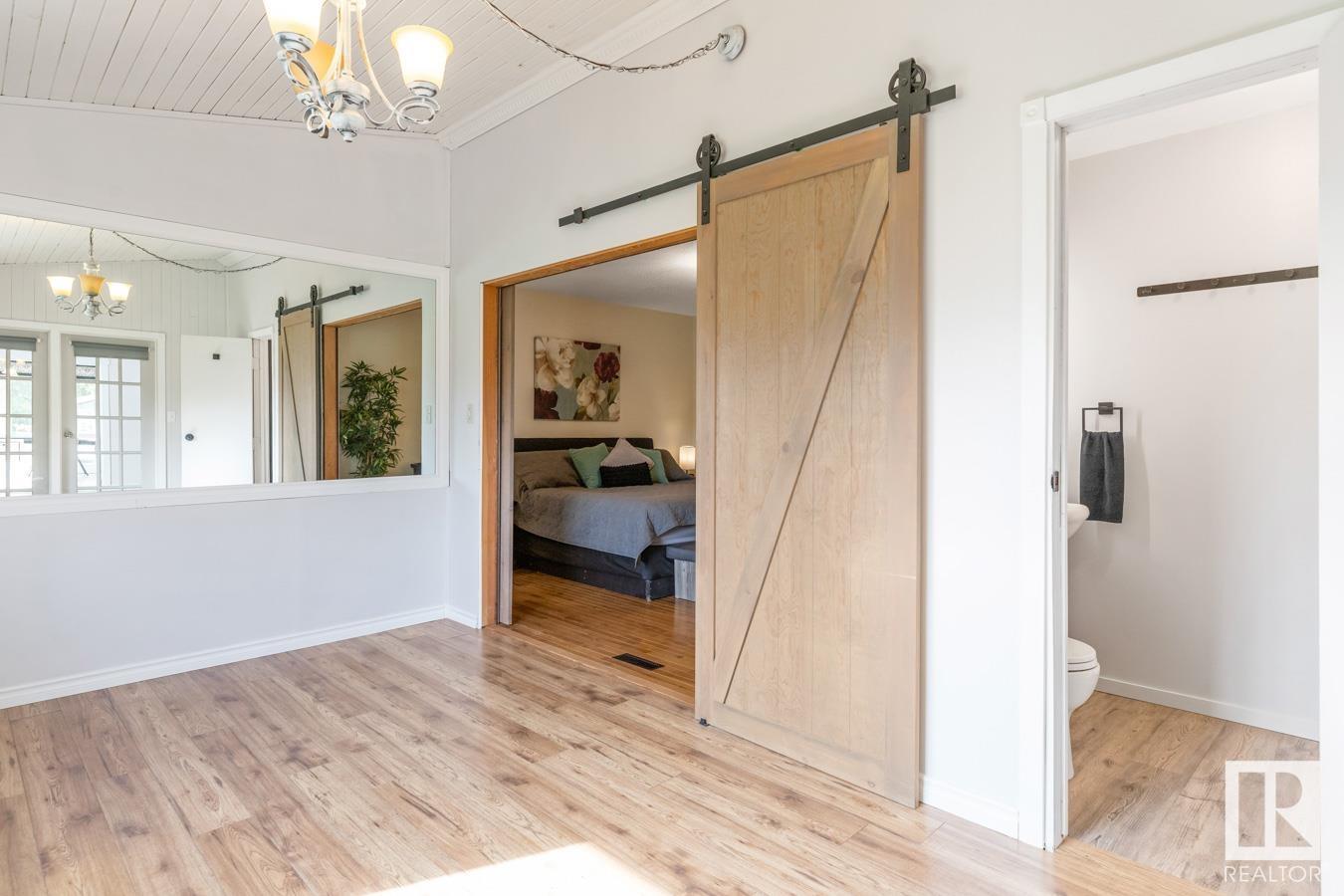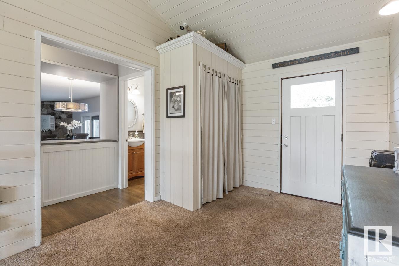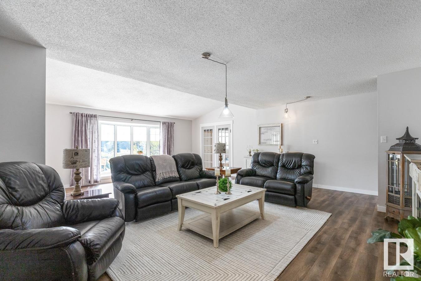 Welcome to your own PRIVATE retreat, just 2 mins from Sherwood Park, featuring a HEATED 40×50 shop, DOUBLE garage, 4 bedrooms & 3.5 baths, tucked onto 2.99 acres surrounded by trees in Sherwood Place. You are welcomed in to find a spacious entry with vinyl flooring that leads to a family sized kitchen that offers plenty of cabinets, NEW S/S appliances & island that overlooks the dining & living room with fireplace. Plenty of natural light in breakfast nook & family room. Awesome king sized primary suite with den, WI closet & 3pc ensuite. 2 more bdrms are both generous in size, 4pc bath & guest bath complement the functional layout. Moving down to the finished basement there is a huge rec room with laminate flooring, large 4th bdrm, UPDATED 3pc bath with sauna, laundry & tons of storage. NEW light fixtures & carpet. LOVE the peace & quiet in the yard with water features, entertaining sized deck, swim spa & raised gardens. DREAM SHOP with 12′ door & 220 power. Beautiful & move in ready!