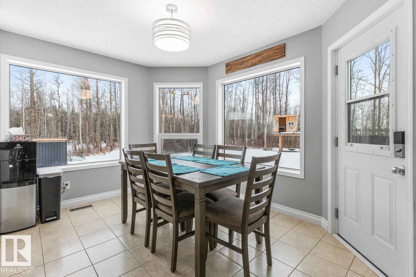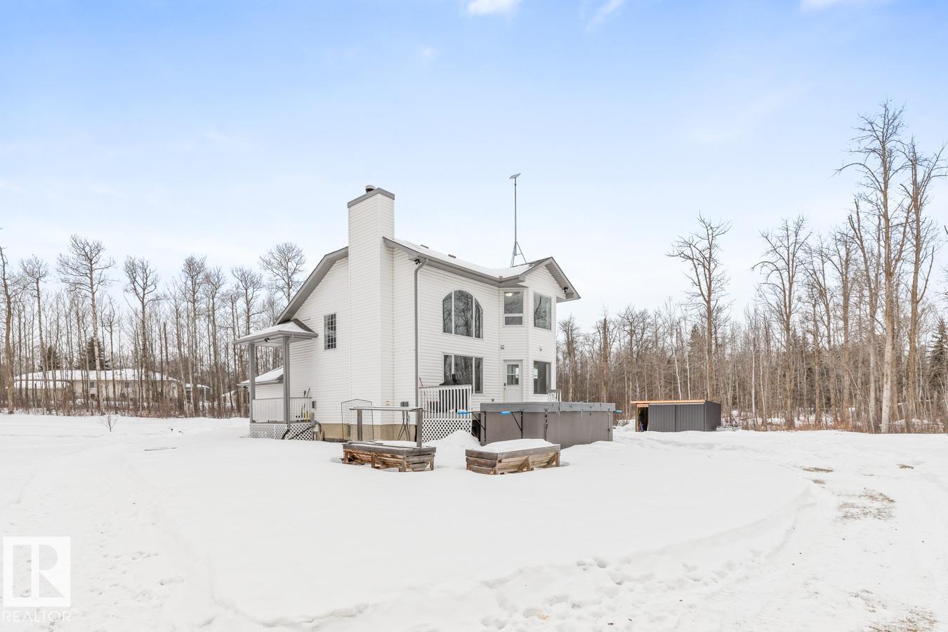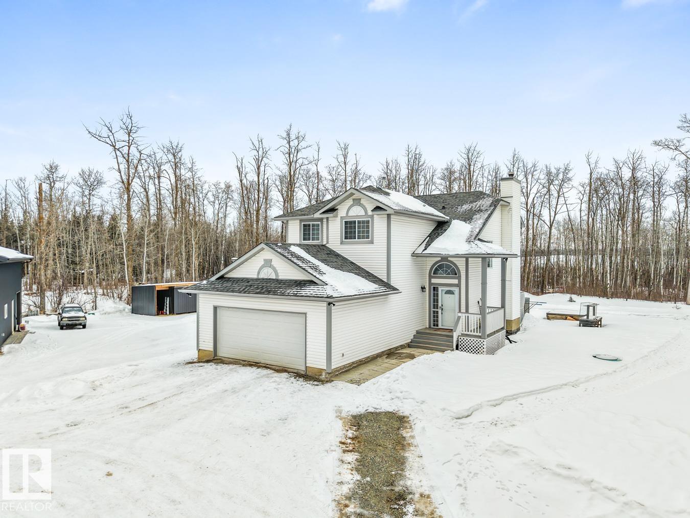 Show-home condition, this 2-storey home is located on 3 acres with treed privacy. Bright main level with tile & vinyl plank flooring. Gourmet kitchen featuring granite countertops, an abundance of cabinetry, & walk-in pantry. The spacious island overlooks the bright dining area, creating a perfect flow for entertaining & family living. S/S appliances complete this stylish & functional heart of the home. Den, guest bath, main-floor laundry, & double attached garage complete the main level. Upstairs: king-sized primary suite with WI closet & ensuite, plus 2 generous bedrooms & 4pc bath. Fully finished basement: entertainment-sized rec room, 4th bedroom, 4pc bath, & ample storage. Step outside to relax on the deck with access to the swim spa. The 30x40x16 shop features 200-amp service, 14×14 overhead door, & 8×8 secondary door, perfect for business, hobbies, or toy storage. Recent upgrades: new septic (2021), shop (2022), A/C (2023), roof (2018), furnace (2026), fresh paint, new carpets, new landscaping.