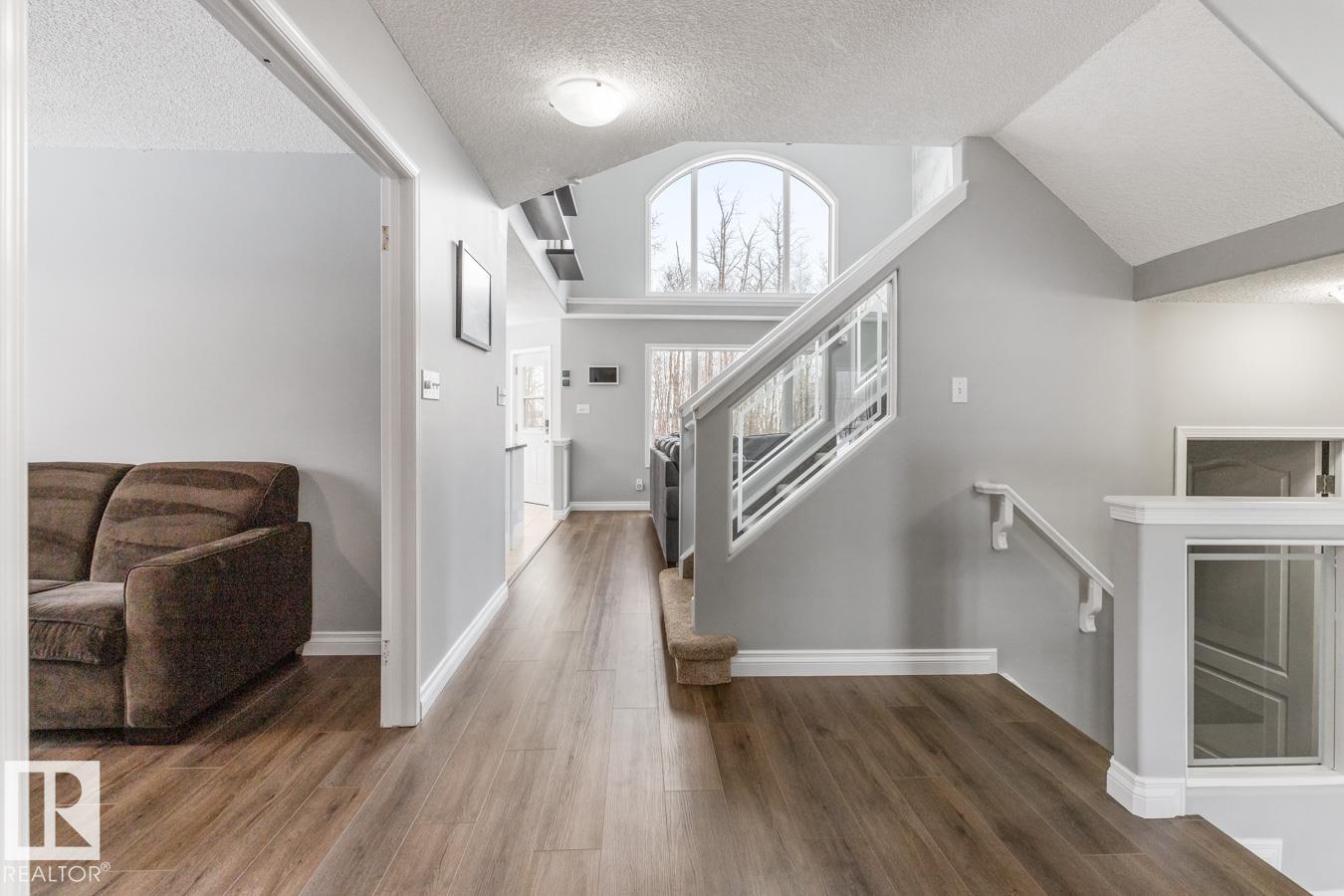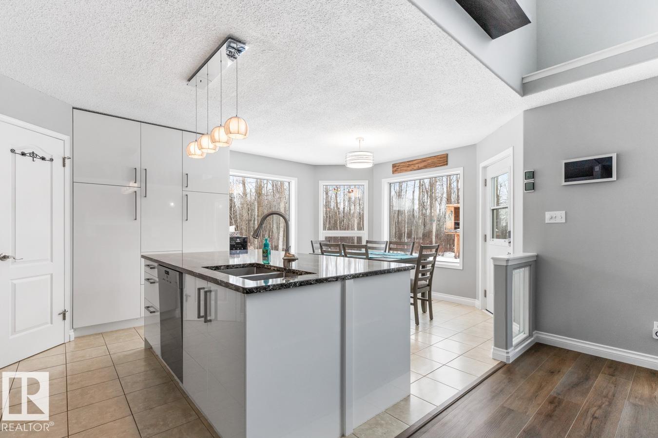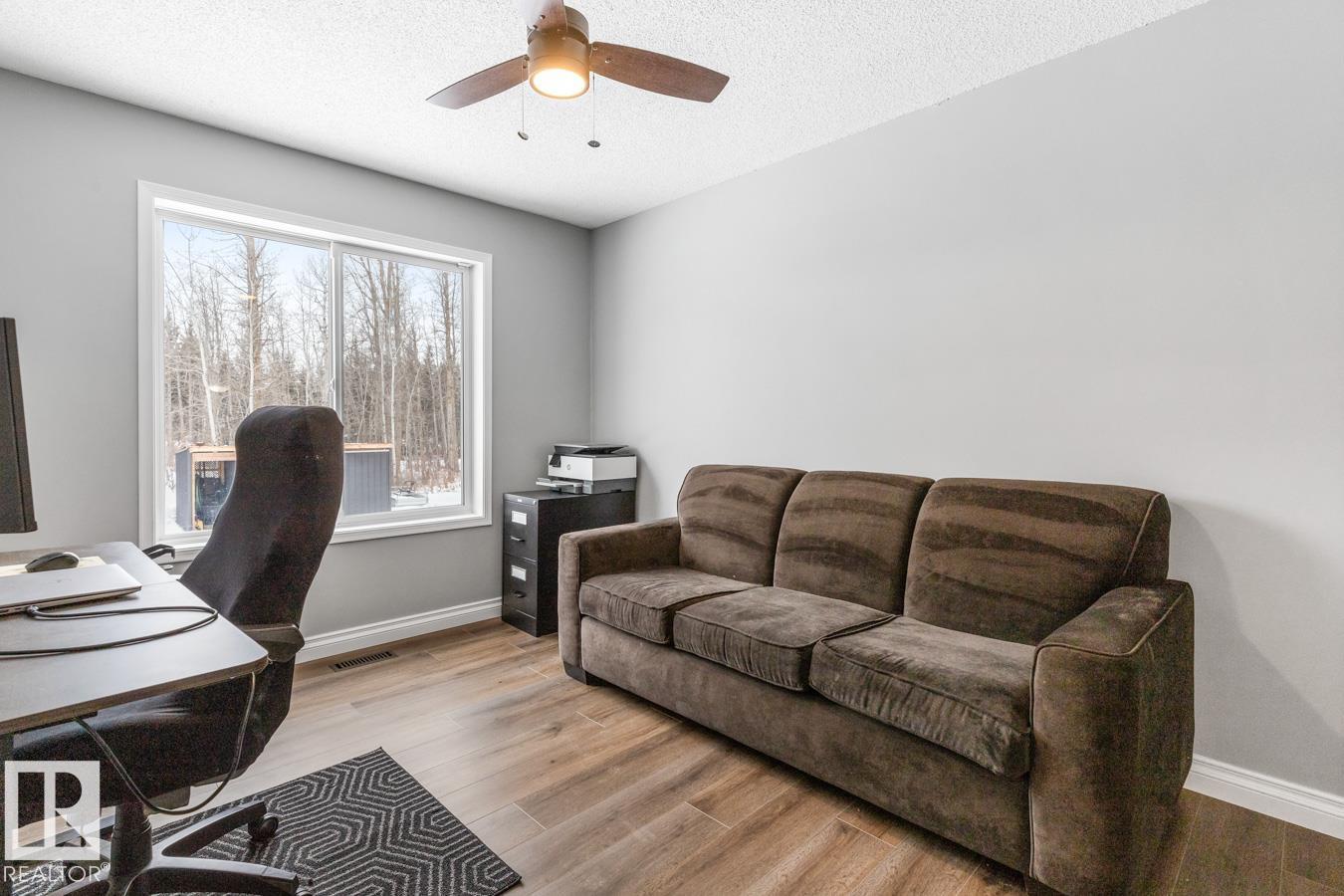 Show-home condition, this 2-storey home is located on 3 acres with treed privacy. Bright main level with tile & vinyl plank flooring. Gourmet kitchen featuring granite countertops, an abundance of cabinetry, & walk-in pantry. The spacious island overlooks the bright dining area, creating a perfect flow for entertaining & family living. S/S appliances complete this stylish & functional heart of the home. Den, guest bath, main-floor laundry, & double attached garage complete the main level. Upstairs: king-sized primary suite with WI closet & ensuite, plus 2 generous bedrooms & 4pc bath. Fully finished basement: entertainment-sized rec room, 4th bedroom, 4pc bath, & ample storage. Step outside to relax on the deck with access to the swim spa. The 30x40x16 shop features 200-amp service, 14×14 overhead door, & 8×8 secondary door, perfect for business, hobbies, or toy storage. Recent upgrades: new septic (2021), shop (2022), A/C (2023), roof (2018), furnace (2026), fresh paint, new carpets, new landscaping.