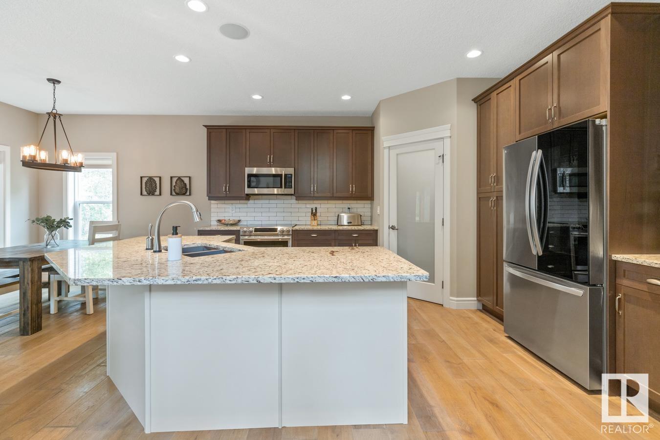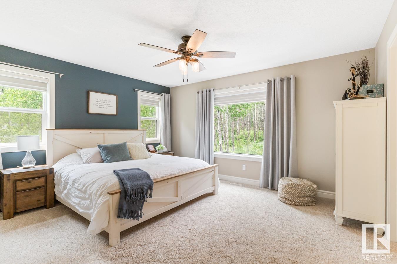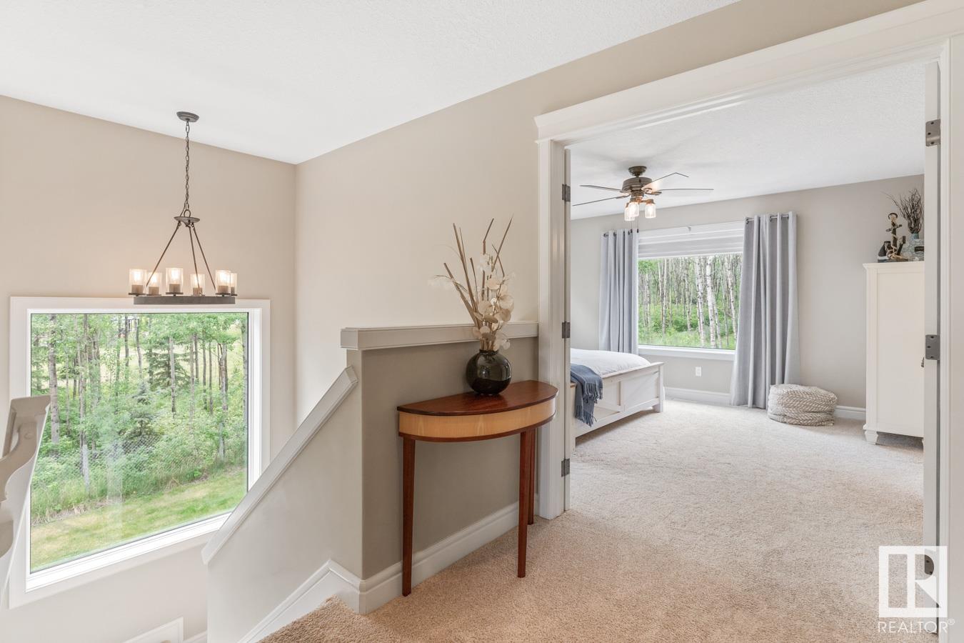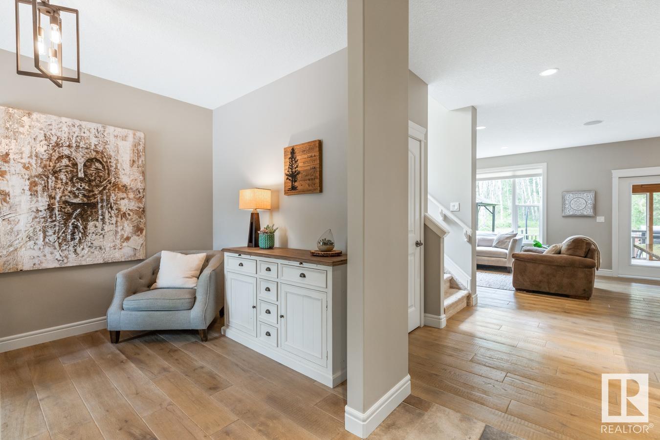 Tucked amongst the trees in Antler Meadows, you will find this beautiful family 2015 built home featuring AC, 3 bedrooms, 2.5 baths & HEATED, TRIPLE attached garage just 12 mins to Sherwood Park. You are welcomed in to find hardwood flooring leading to the kitchen that offers plenty of cabinets, walkthrough pantry, stainless steel appliances & granite island that looks over the dining & family room with fireplace, bathed in natural light from the abundance of windows giving a great view of your treed lot. Complementing the main floor is a flex room, laundry & 1/2 bath. Moving upstairs you’ll ENJOY the family sized bonus room with 9′ ceilings. King sized primary suite with WI closet & luxurious ensuite. 2 more bedrooms are both generous in size & 5pc main bath complete the upper level. HEATED, triple attached garage with drive thru bay & city water. LOVE the view from the deck to take in all those evening sunsets & look out over the yard. Quaint community with easy access to ShPk – Welcome HOME!