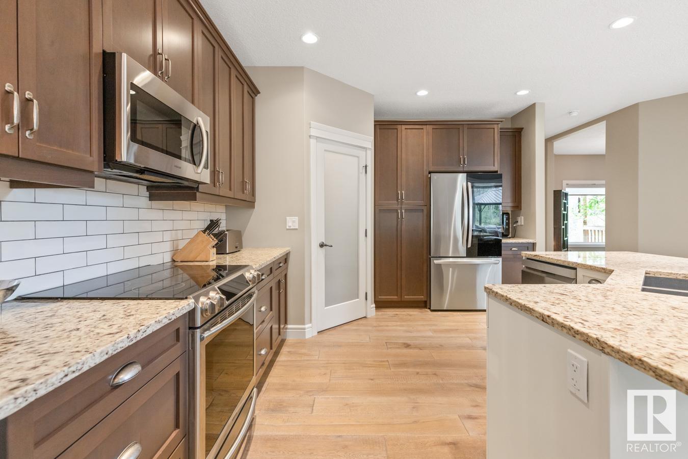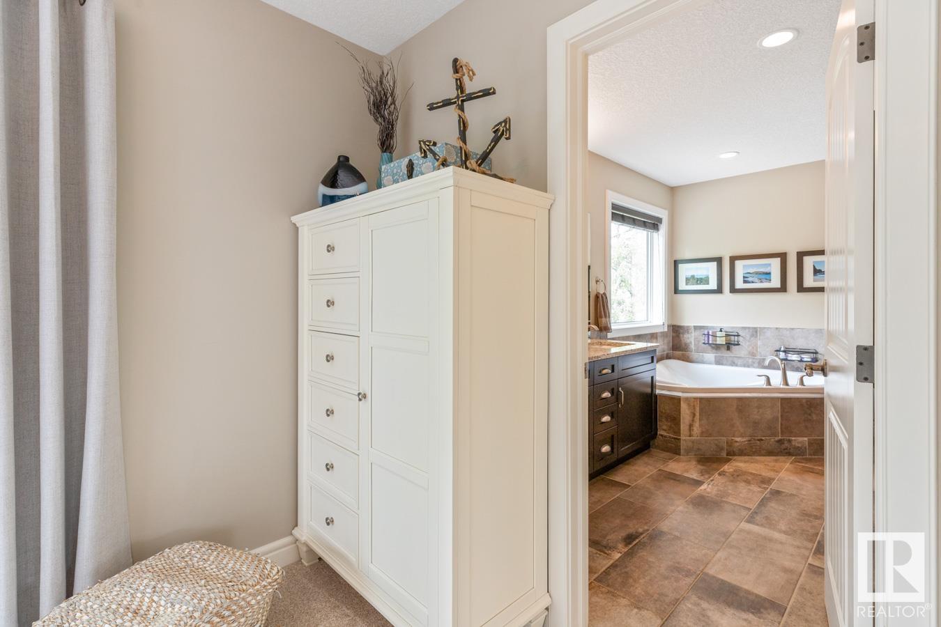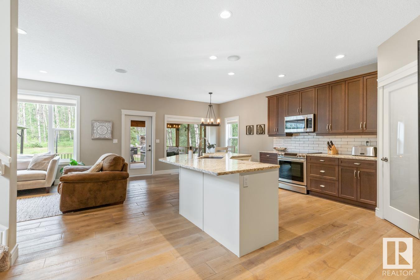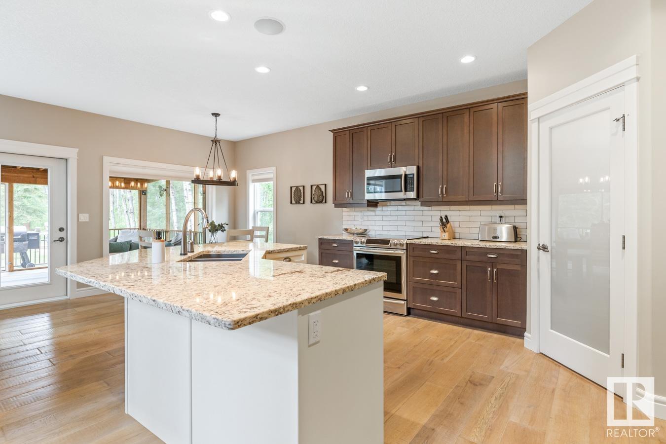 Tucked amongst the trees in Antler Meadows, you will find this beautiful family 2015 built home featuring AC, 3 bedrooms, 2.5 baths & HEATED, TRIPLE attached garage just 12 mins to Sherwood Park. You are welcomed in to find hardwood flooring leading to the kitchen that offers plenty of cabinets, walkthrough pantry, stainless steel appliances & granite island that looks over the dining & family room with fireplace, bathed in natural light from the abundance of windows giving a great view of your treed lot. Complementing the main floor is a flex room, laundry & 1/2 bath. Moving upstairs you’ll ENJOY the family sized bonus room with 9′ ceilings. King sized primary suite with WI closet & luxurious ensuite. 2 more bedrooms are both generous in size & 5pc main bath complete the upper level. HEATED, triple attached garage with drive thru bay & city water. LOVE the view from the deck to take in all those evening sunsets & look out over the yard. Quaint community with easy access to ShPk – Welcome HOME!