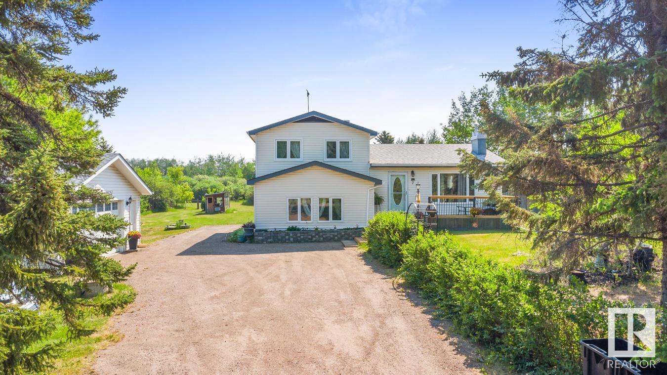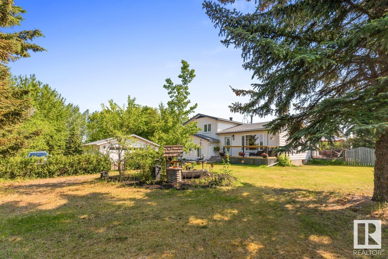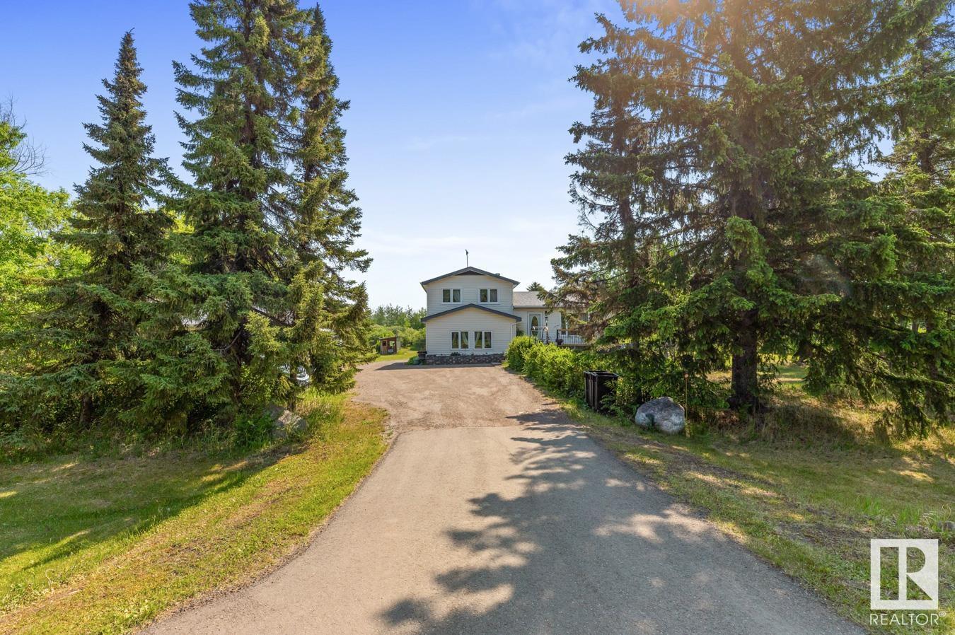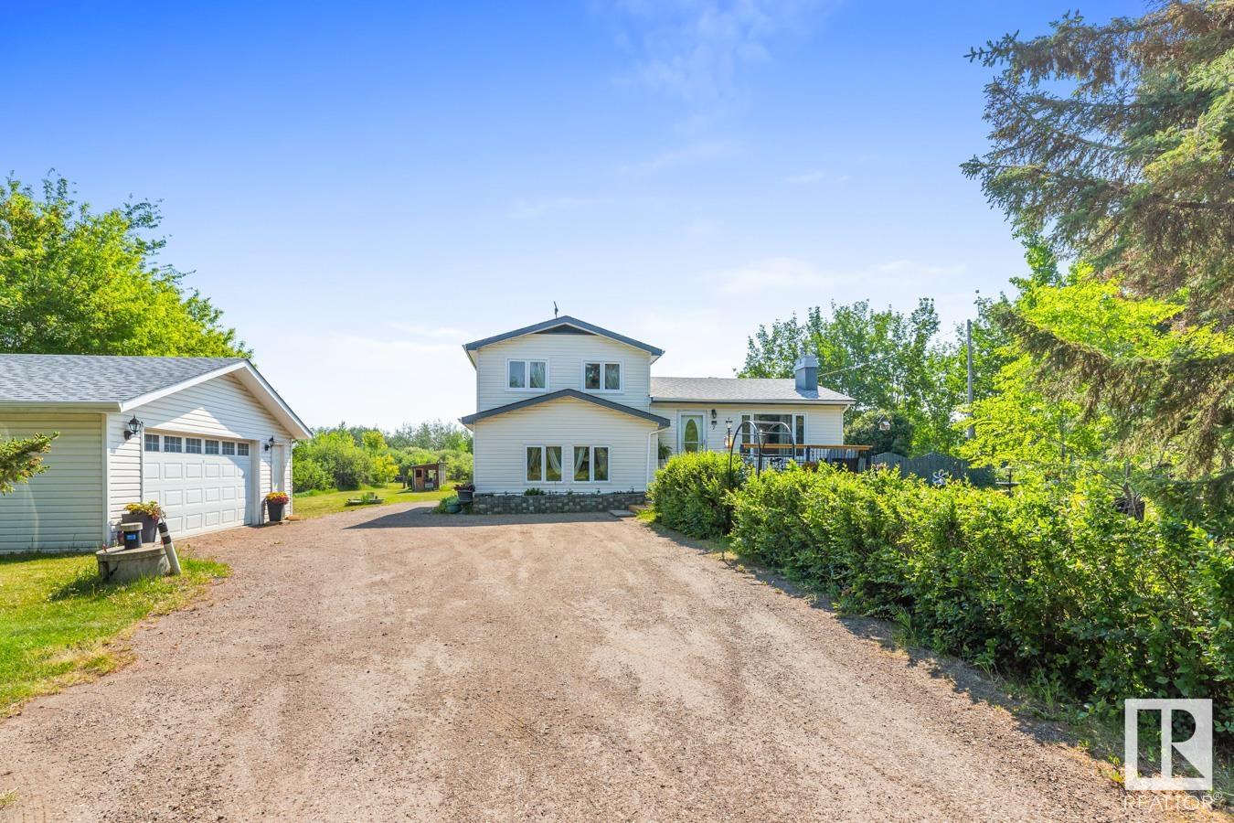 Tucked onto 3.68 PRIVATE acres in the DESIRABLE community of Queensdale Place, minutes from Sherwood Park, you will find this charming home featuring 3 bedrooms, 1.5 baths & DOUBLE DETACHED GARAGE. You are welcomed in to a bright & spacious entrance that opens to the living room with cozy fireplace & laminate flooring. The kitchen offers plenty of cabinets, huge walk in pantry, stainless steel appliances & opens up to the dining area & 4 season sunroom. Upstairs you’ll LOVE the king sized primary suite with double closets & private balcony. 2nd bedroom is generous in size & 4pc main bath complement the layout. The lower level offers a huge family room, guest bath & laundry. Fully finished basement has another bedroom & rec room. There’s room for the whole family! UPGRADES include ROOF (2023), updated septic & boiler system. ENJOY the privacy of the land, being surrounded by mature trees, gardens, patio & greenhouse. Ample space for a future shop. The LOCATION doesn’t get better than this! HOME SWEET HOME!