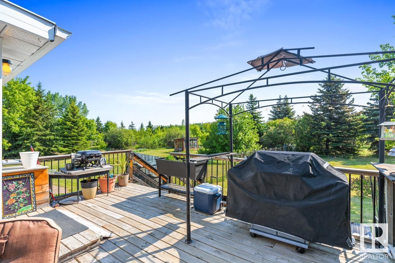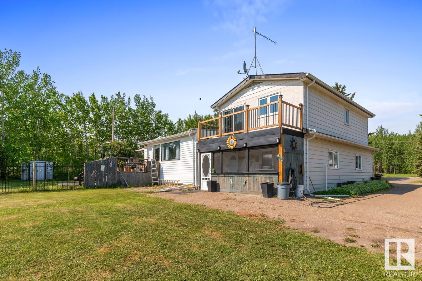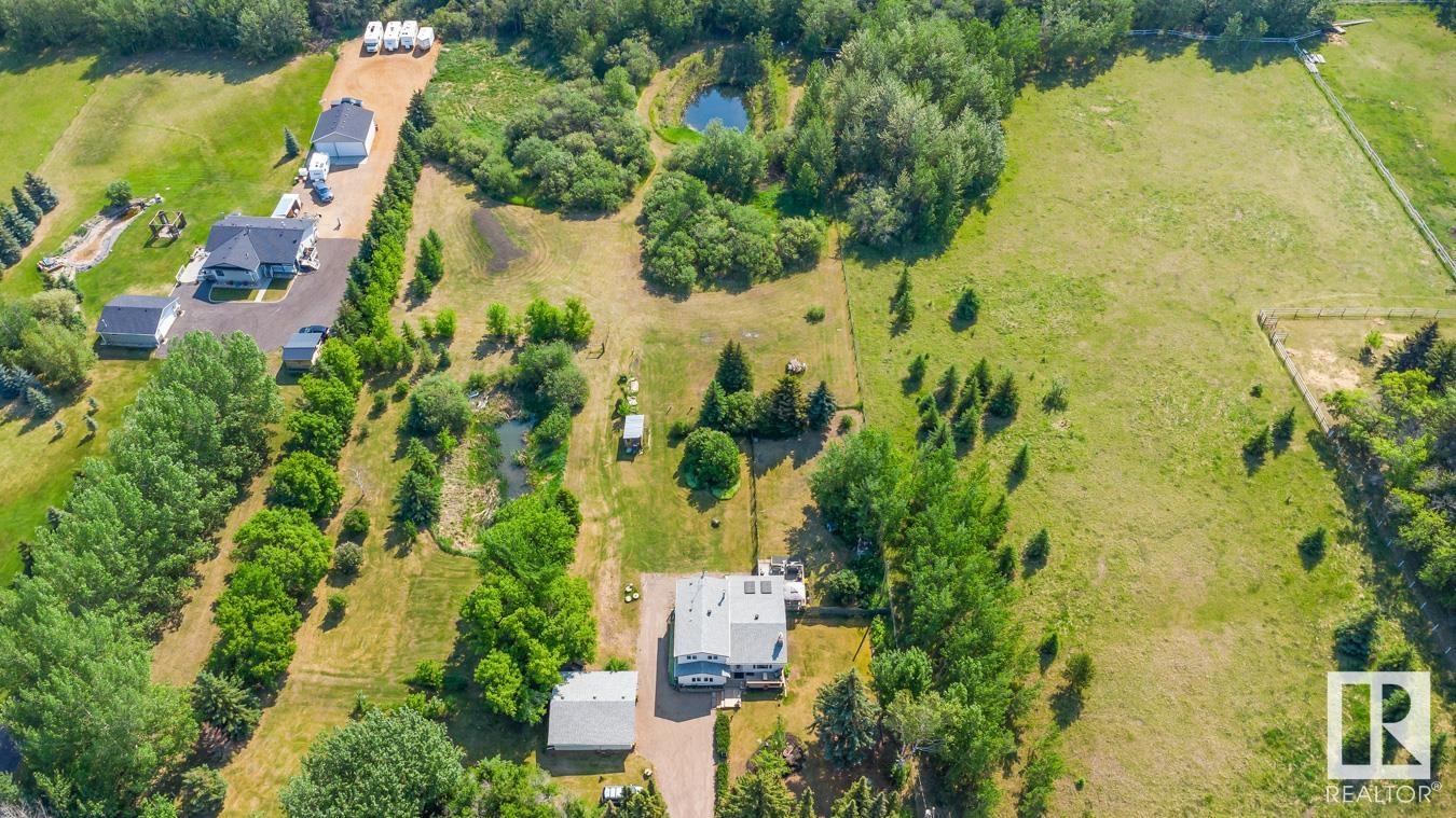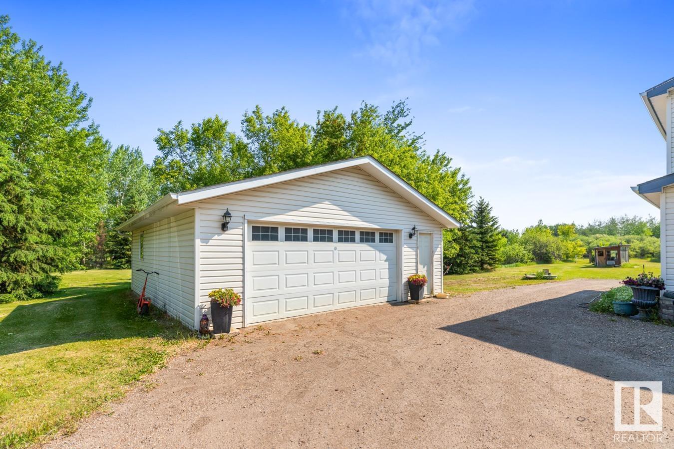 Tucked onto 3.68 PRIVATE acres in the DESIRABLE community of Queensdale Place, minutes from Sherwood Park, you will find this charming home featuring 3 bedrooms, 1.5 baths & DOUBLE DETACHED GARAGE. You are welcomed in to a bright & spacious entrance that opens to the living room with cozy fireplace & laminate flooring. The kitchen offers plenty of cabinets, huge walk in pantry, stainless steel appliances & opens up to the dining area & 4 season sunroom. Upstairs you’ll LOVE the king sized primary suite with double closets & private balcony. 2nd bedroom is generous in size & 4pc main bath complement the layout. The lower level offers a huge family room, guest bath & laundry. Fully finished basement has another bedroom & rec room. There’s room for the whole family! UPGRADES include ROOF (2023), updated septic & boiler system. ENJOY the privacy of the land, being surrounded by mature trees, gardens, patio & greenhouse. Ample space for a future shop. The LOCATION doesn’t get better than this! HOME SWEET HOME!