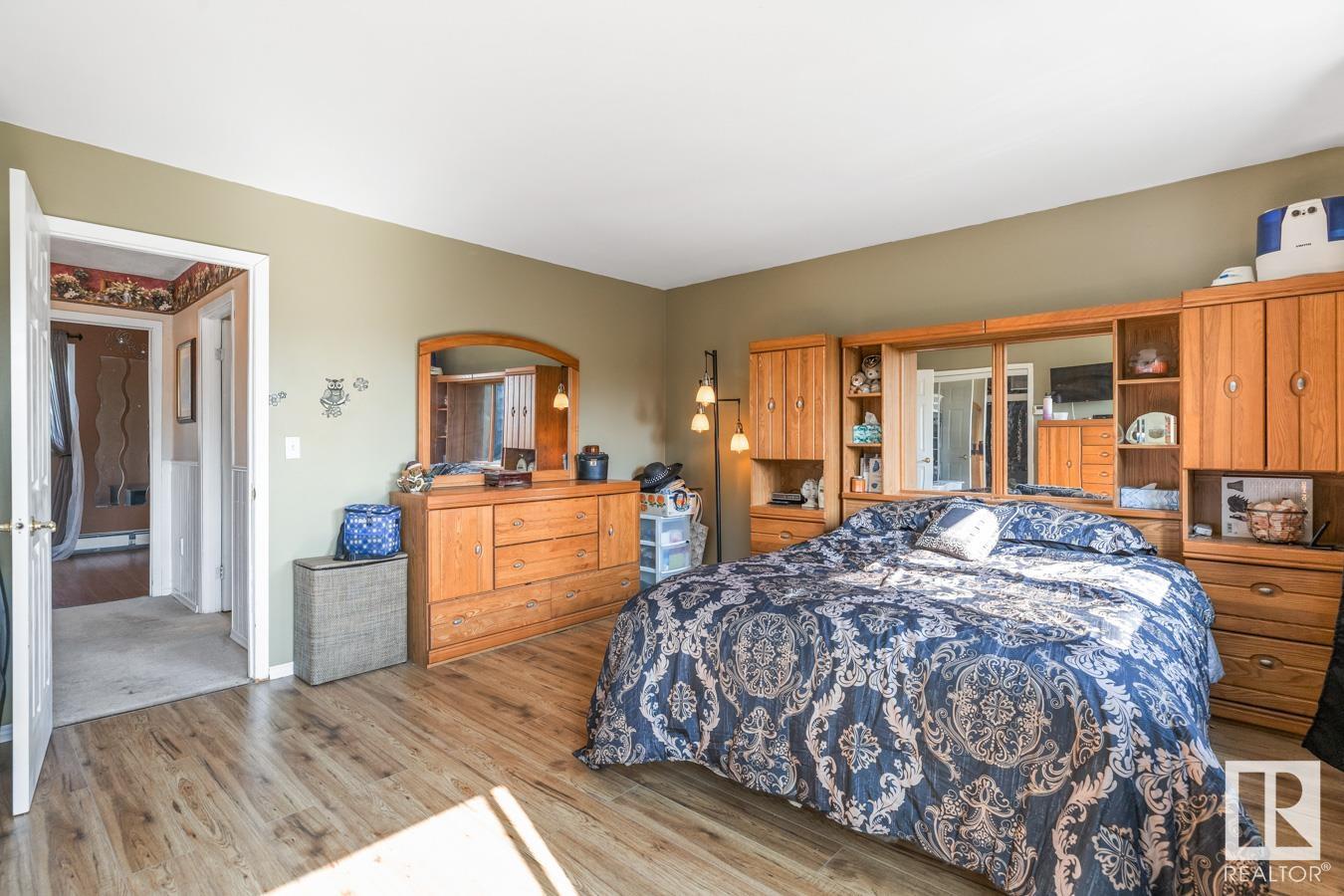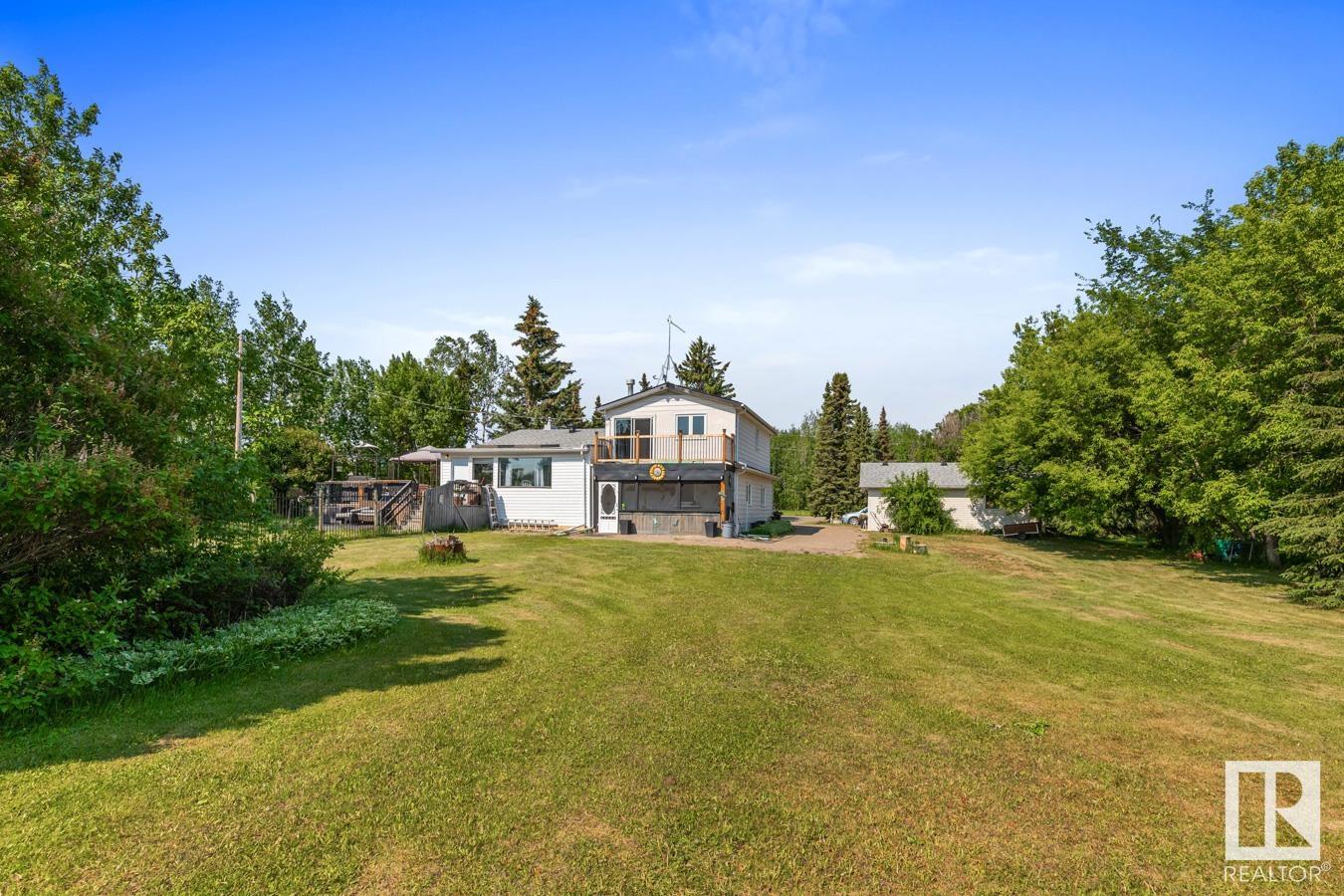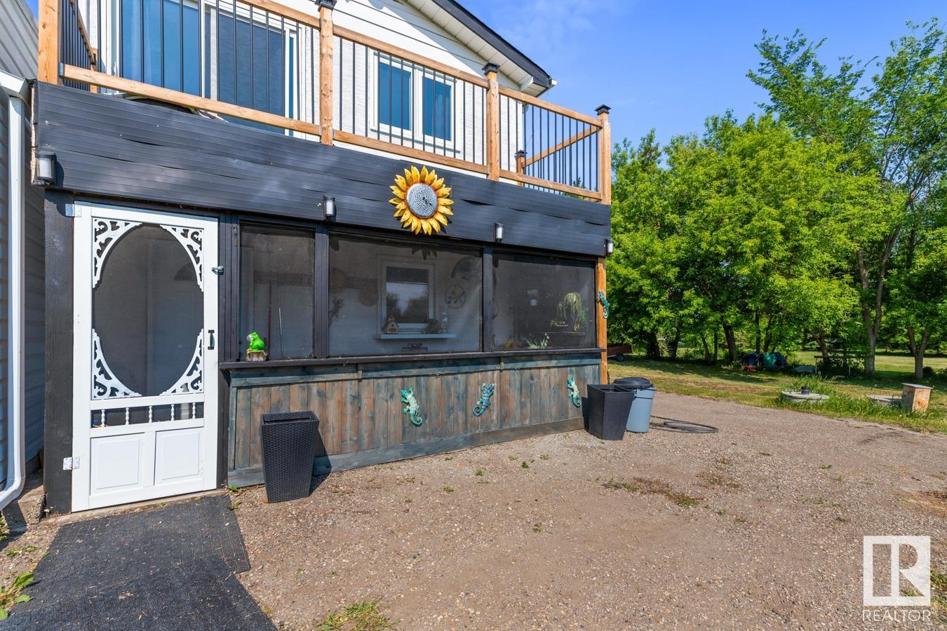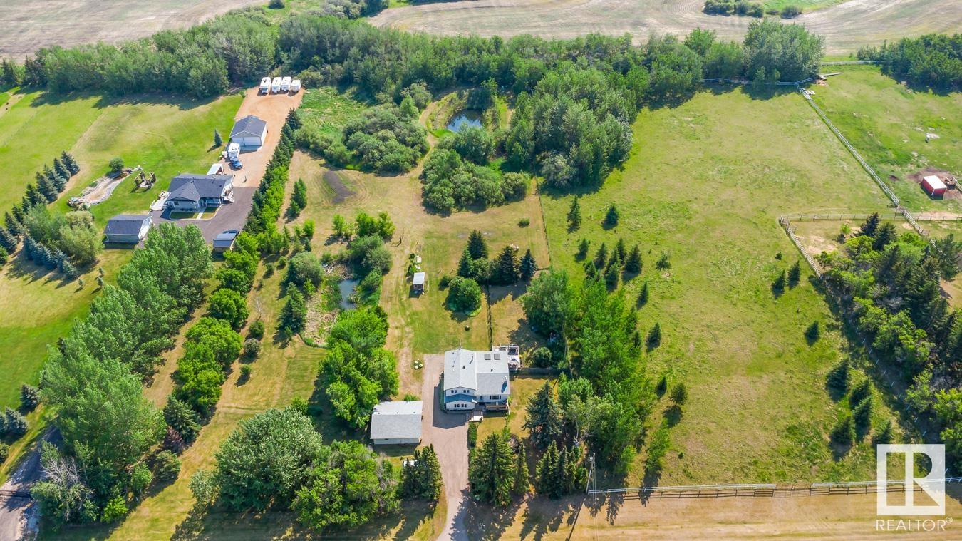 Tucked onto 3.68 PRIVATE acres in the DESIRABLE community of Queensdale Place, minutes from Sherwood Park, you will find this charming home featuring 3 bedrooms, 1.5 baths & DOUBLE DETACHED GARAGE. You are welcomed in to a bright & spacious entrance that opens to the living room with cozy fireplace & laminate flooring. The kitchen offers plenty of cabinets, huge walk in pantry, stainless steel appliances & opens up to the dining area & 4 season sunroom. Upstairs you’ll LOVE the king sized primary suite with double closets & private balcony. 2nd bedroom is generous in size & 4pc main bath complement the layout. The lower level offers a huge family room, guest bath & laundry. Fully finished basement has another bedroom & rec room. There’s room for the whole family! UPGRADES include ROOF (2023), updated septic & boiler system. ENJOY the privacy of the land, being surrounded by mature trees, gardens, patio & greenhouse. Ample space for a future shop. The LOCATION doesn’t get better than this! HOME SWEET HOME!